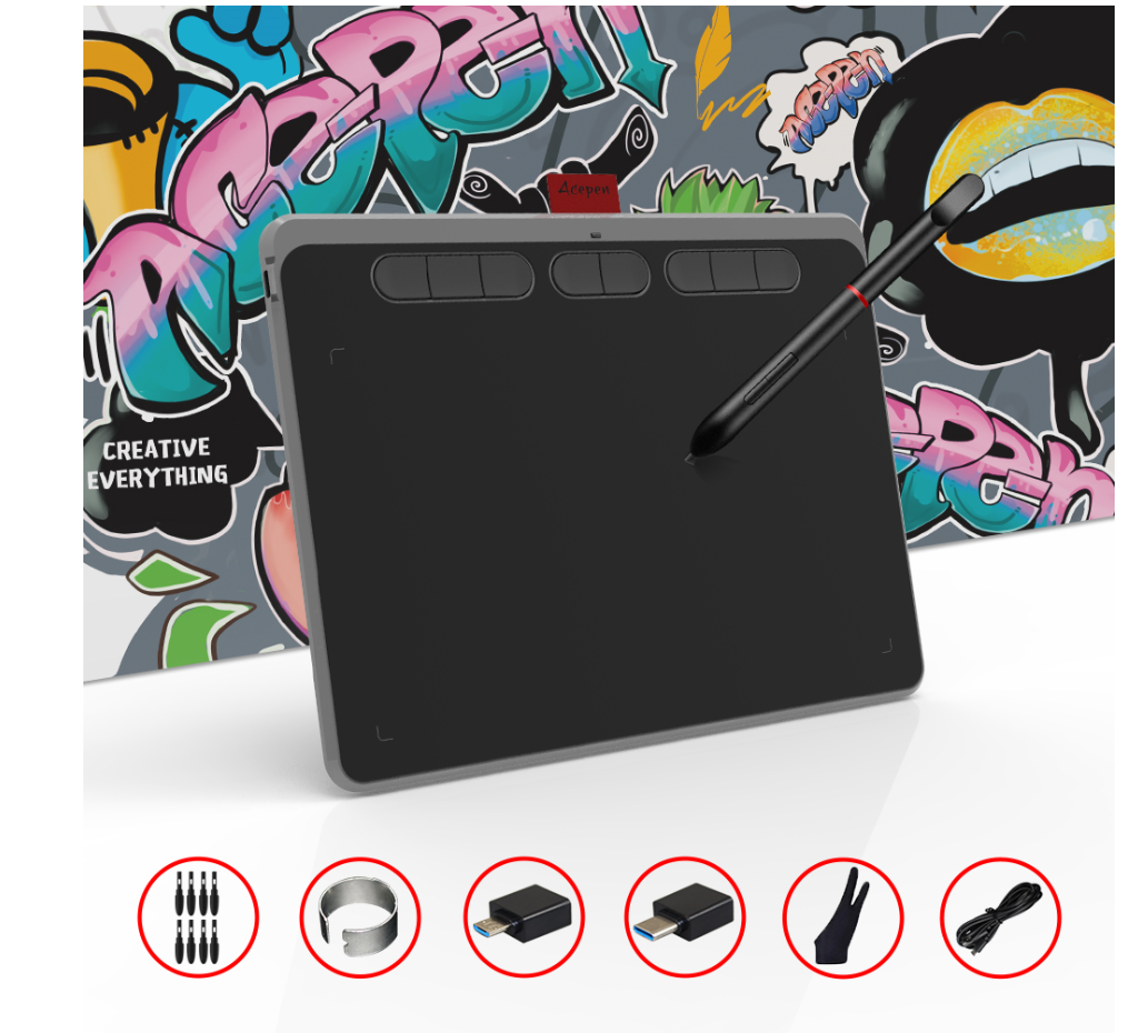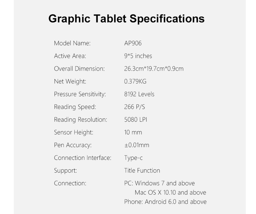 AP906 Gray Graphic Pen Tablet with 8192 Pressure Levels battery-free stylus(230*132mm)