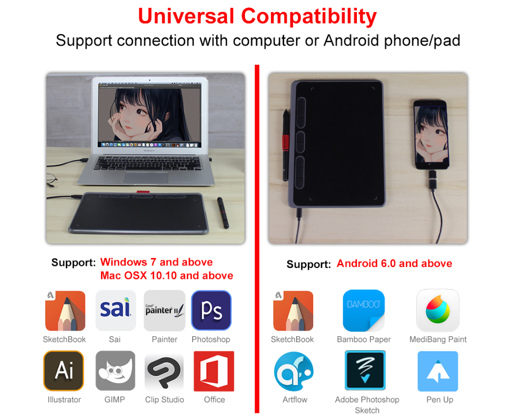 OS Supported----You can easily connect your phone to the tablet with the OTG connector; only mobile phone and tablet powered by version 6.0 or above are supported.